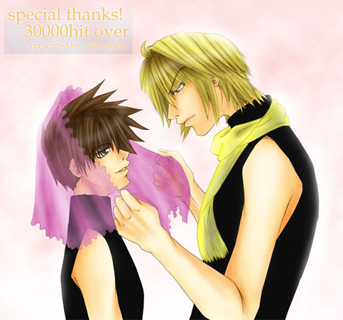 | そして、30000打破記念イラスト 私には、結婚式に見えてなりません。ええ、もう絶対に! ヤバイです、止まるところを知りません。 雪桜様、今後もしょっちゅうお邪魔いたします。 |