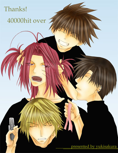 | 三空ノベルス&イラストサイト 【Pretty Good 】様の、40000hit overイラストです♪ とてもとても、らしい四人ではありませんか! こんな彼らを見ていたら、いつの間にやら言葉が溢れ、気が付いたらこの様なモノを… 許可をいただいて、添えてみました。雪桜様、ありがとうございます。 口は悪いし手癖も悪い 僕らの旅は、いつだって… 崖っぷちの路だけど 独りじゃないから、笑って行こう 下は見るなよ。死にたくなけりゃ… 悟浄、たまには髪型変えてみろよ ほら、似合うぜ ピンクのリボンなんかイイですねぇ 止めろっ!バカ猿…って、オラッ!! 喧しいぞ…てめえら 空の上でふんぞり返る そんなタイクツまっぴらごめん 命張ったぎりぎりの… 俺たちだけの生き方で 俺たちにしか出来ない事を… いつだって、最後に笑うのは俺たちだから |